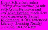 Esther Kilchmann ist promovierte Literaturwissenschaftlerin an der Universität Hamburg. Sie forscht und lehrt zu experimenteller Literatur, Visualität und Ästhetik von Schrift sowie zu Transkulturalität, literarischer Mehrsprachigkeit und Übersetzung. Publikationen unter anderem zu Yoko Tawada, zur Gegenwartslyrik und zu DADA sowie zu Poetologie und Geschichte literarischer Mehrsprachigkeit. Deutschsprachige Literatur in translingualen Bewegungen (2024).