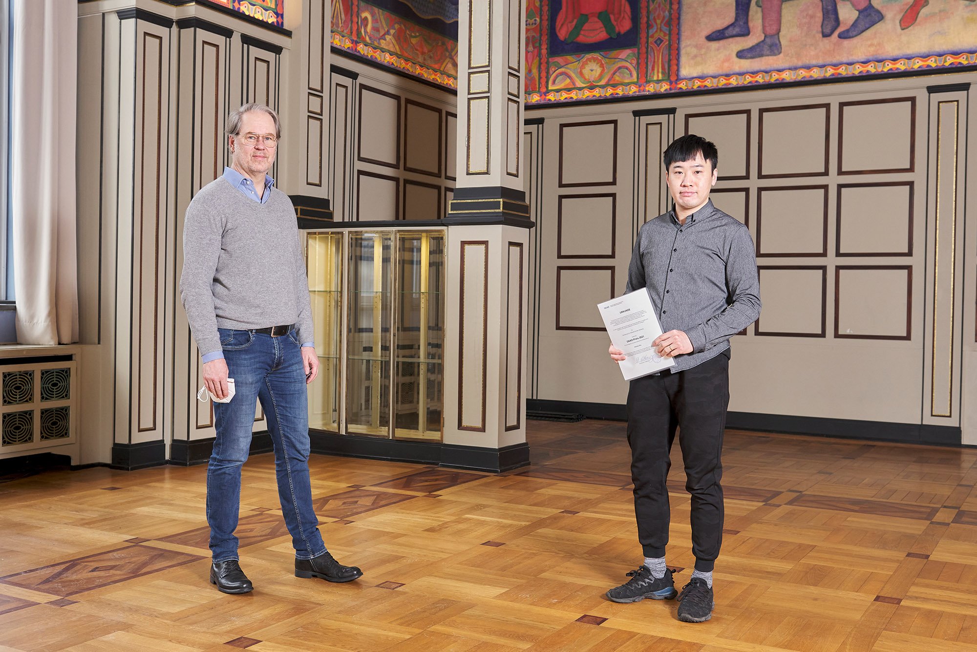 Der HFBK-Promovend Zhichao Zhu erhält den diesjährigen DAAD-Preis für internationale Studierende. Zhu studiert im Studienschwerpunkt Film bei Prof. Robert Bramkamp. In seiner Dissertation setzt sich der 33-Jährige mit Prozessen des Werdens jenseits des Individuums und polymorphen Partizipationsvorgängen auseinander und vereint dabei heterogene theoretische Impulse, beispielsweise aus der chinesischen oder der französischen Philosophie. In seinen Filmen untersucht er mögliche Animationsformen im Kontext digitaler Räume oder Science Fiction-Motive, die das Verhältnis von Innen- und Außenraum in eine neue Beziehung setzen. Der mit 1.000,- Euro dotierte, jährlich ausgeschriebene Preis wird vom Deutschen Akademischen Austauschdienst (DAAD) finanziert und richtet sich an internationale Studierende, die sich durch herausragende künstlerische Leistungen und besonderes soziales und interkulturelles Engagement auszeichnen. Jeweils ein sechsmonatiges Leistungsstipendium erhalten die internationalen HFBK-Studierenden Seda Yildiz, Noi Fuhrer, Talya Feldman, Simon Mine, Prateek Vijan und Hüsnü Enes Yurdaün. Zwei Leistungsstipendien werden jeweils zur Hälfte aus Mitteln des DAAD und der Karl H.-Ditze Stiftung zur Förderung der internationalen Mobilität vergeben, vier Leistungsstipendien finanziert die BWFGB Hamburg. Im Rahmen der feierlichen Preis- und Stipendienverleihung, die aufgrund der Corona-Pandemie ohne Beteiligung der Öffentlichkeit stattfand, betonte der Präsident, Prof. Martin Köttering, den besonderen Stellenwert der internationalen Studierenden für die künstlerische Arbeit und den interkulturellen Austausch an der HFBK Hamburg.
